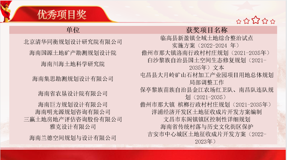 会议表彰了2022年度14家先进会员单位,颁发了2022年海南省土地学会优秀项目奖、学术年会论文奖。